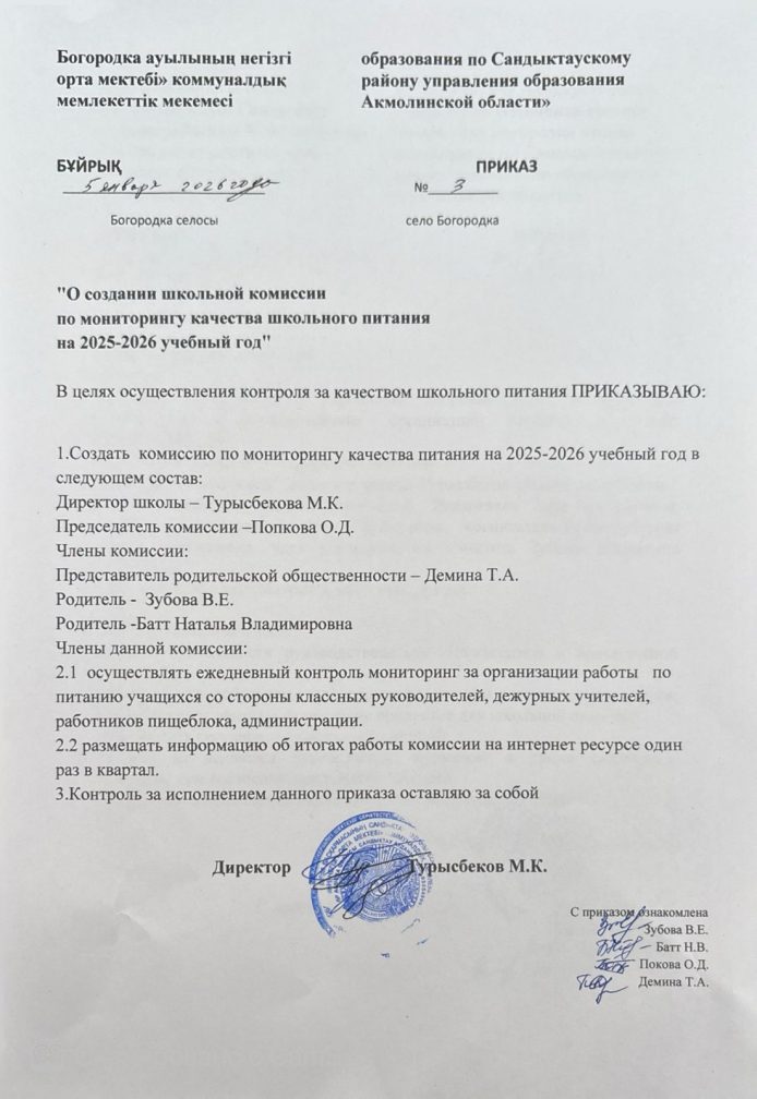 Коммунальное государственное учреждение «Основная средняя школа села Богородка отдела образования по Сандыктаускому району управления образования Акмолинской области»