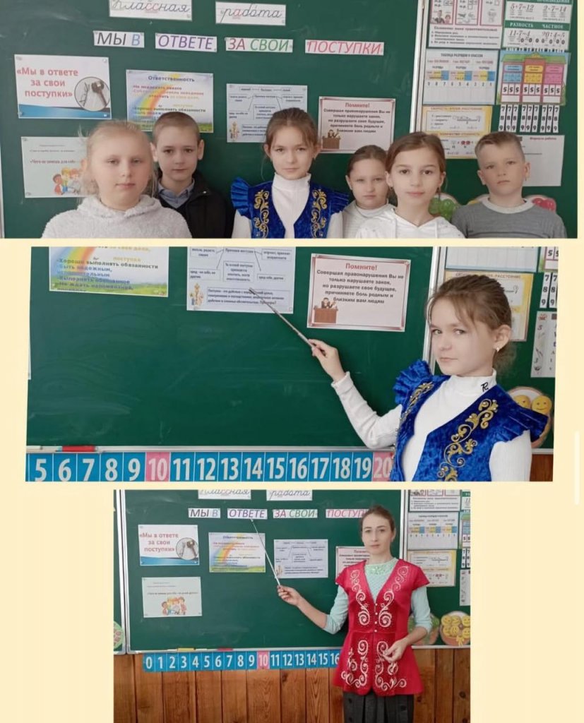 4-сыныпта «Біз өз іс-әрекетімізге жауаптымыз» тақырыбында ақпараттық сағат өтті. Іс-шара барысында оқушылар өз сөздері мен әрекеттеріне жауапкершілікпен қараудың маңыздылығын талқылады. Олар түрлі өмірлік жағдайларды талдап, дұрыс шешім қабылдауды үйренді. Оқушылар белсенді қатысып, әр адам өз ісіне жауап беріп, адал әрі жақсы істер жасауға ұмтылуы керектігі туралы қорытынды жасады.